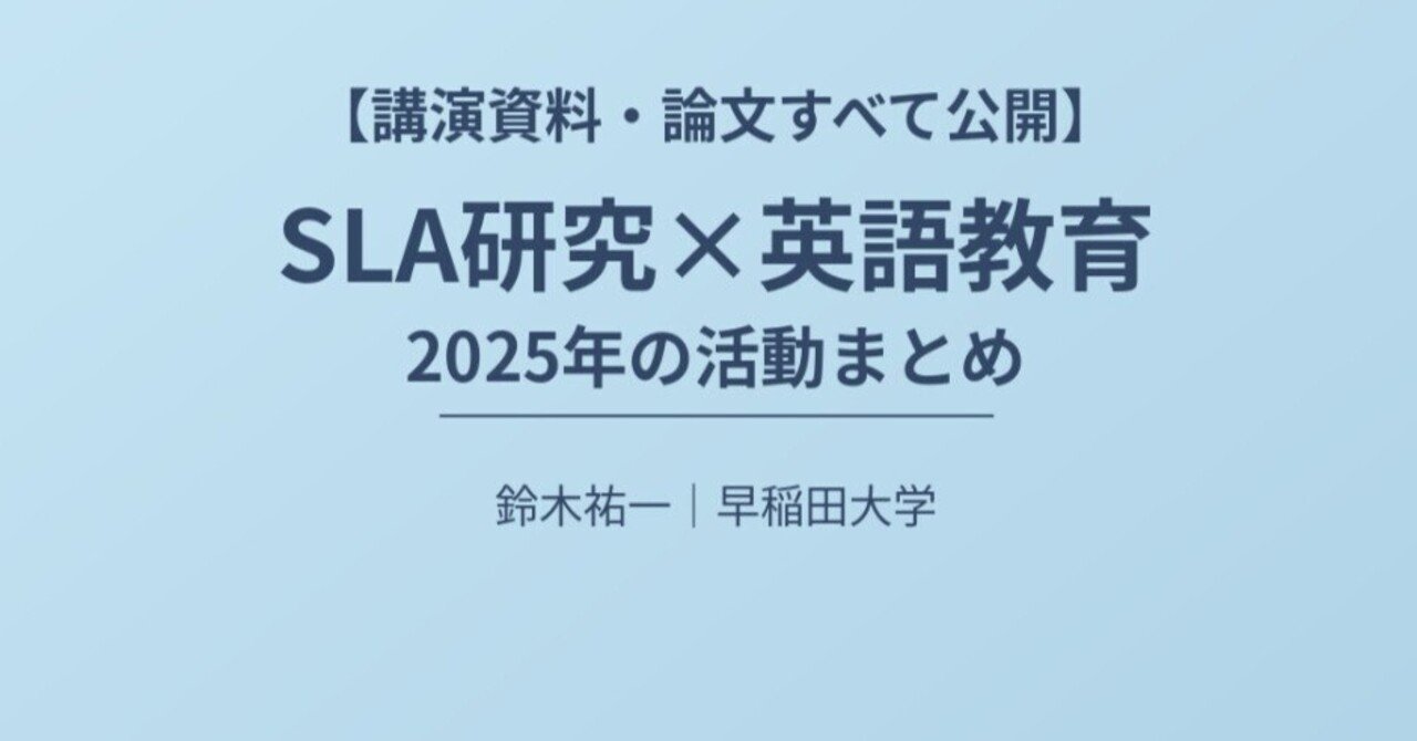 SLA研究×英語教育|2025年の活動まとめ【講演資料・論文すべて公開】|鈴木祐一 | 早稲田大学 第二言語習得・英語教育研究