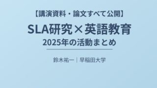 2025年の活動まとめをNoteに公開しました。国際ジャーナル掲載論文(Applied Linguistics, SSLA, Language Teachingなど)の紹介と、英講演・セミナー資料を一覧でご覧いただけます。SLA研究×英語教...