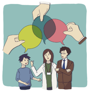 1.研究者、教師、学習者が対話している様子 (1)