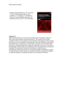 [Preprint]DeKeyser, R. M., & Suzuki, Y. (2025). Skill acquisition theory. In B. VanPatten, G. D. Keating, & S. Wulff (Eds.), Theories in second language acquisition An introduction (4th ed., pp. 157-182) 2025.07.09